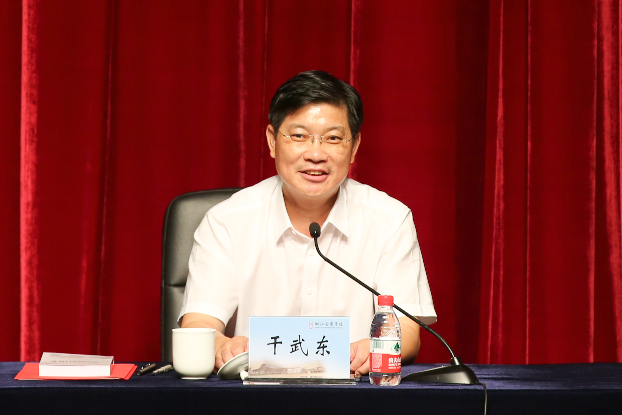 学院党委书记干武东在会上作《变革重塑 提效创优 奋力谱写“高水平一流”发展新篇章》的讲话。他充分肯定了全体教职员工在上半年及暑假期间所作出的辛勤付出和取得的工作成效,指出全体教职员工对学院的真挚情感、殷切希望和责任担当是我们最宝贵的财富,也是学院行稳致远的重要基础保证。他希望全校上下以更大的勇气和魄力,以超常规的思路和举措,推进学院各项工作变革重塑。一是以“一盘棋”的思维系统推进,构筑事业发展新格局。学院加快推进“高水平一流”建设,必须以系统观念和系统方法进行前瞻性思考、全局性谋划、战略性布局和整体性推进,加快构筑发展新格局。只有注重系统谋划、强化整体协同、注重重点突破,才能确保在前进的道路上目标明、思路清、举措实,不走弯路。二是以“先行者”的姿态变革重塑,激发事业发展新动力。全体教职工要深刻领会王纲部长在全省宣传文化系统专题研讨班上提出的“5个之变”,以“先行者”的姿态,以刀刃向内的勇气自我革命,勇闯无人区,以理念变革、制度变革、模式变革来一体推进组织重塑、机制重塑、能力重塑,强化观念更新、坚持问题导向、创新制度机制,着力解决师生反映较多的共性问题,以制度创新助推变革重塑,确保各项工作都能做到有章可循、有规可依。三是以“创一流”的标准提效创优,争创事业发展新成效。面对新的发展阶段和新的工作要求,全校师生必须以慢不得、等不起、坐不住的紧迫感,全面推进比学赶超,让“争表率、创示范、当先进”成为全校上下共同的目标,形成事事争一流、人人创一流的氛围,比作风、比能力、比业绩,以不畏浮云遮望眼的豪迈跑出笃定前行“新姿态”,以重整行装再出发的姿态跑出制胜未来“主动权”,以不待扬鞭自奋蹄的自醒跑出比学赶超“精气神”。四是以“讲正气”的新风砥砺前行,打造事业发展新生态。全体教职工要爱护珍惜学院的政治生态,讲政治、重团结、守底线,持续营造海晏河清、山清水秀的政治生态,为学院的发展凝聚强大合力。最后,他强调,党的二十大即将召开,各部门、院系要进一步绷紧安全之弦,严格落实各项疫情常态化防控举措,进一步加强意识形态管理,强化校园治安综合治理,加强校园日常巡查和值班管理,确保校园安全稳定,以优异成绩迎接党的二十大胜利召开。