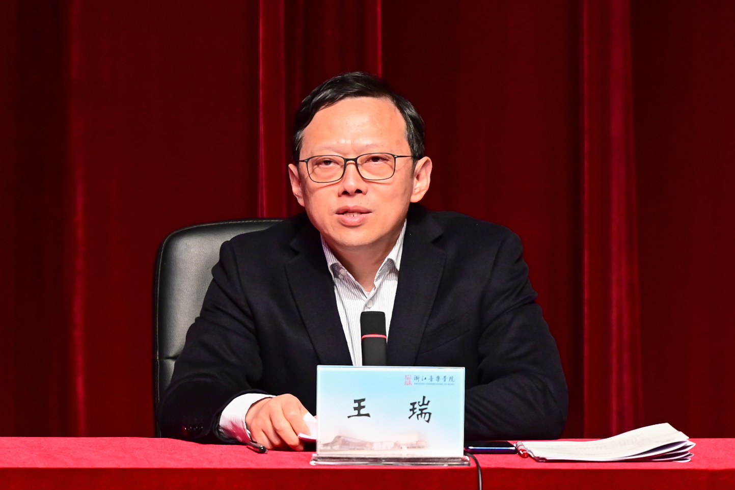 王瑞表示,在新的一年里,面对我国高等教育发展战略新布局、艺术学一级学科目录新调整、数字变革对全球教育未来的新影响,学院要坚持高起点规划、高标准建设、高质量发展、高水平目标的“四高”原则,在全国和全球的历史场域中确定学院的定位和坐标,谋划学院的发展和方向。他围绕2023年党政工作要点,提出要深化人才培养体系改革,提升学科建设、科研创作和艺术创演水平,深入实施人才强校战略,全面推进开放办学,加快构建现代大学治理机制,加快实施数字校园建设,并强调了2023年要重点做好高质量通过本科教学工作合格评估和第十四届音乐金钟奖的推荐、组织和参赛工作两项工作。最后,他希望全体教职员工勠力同心、荣辱与共、同舟共济,以饱满的热情和更大的担当作为,展现浙音人的风采和贡献,不负历史、不负韶华,向党和人民交出一份优秀的答卷。