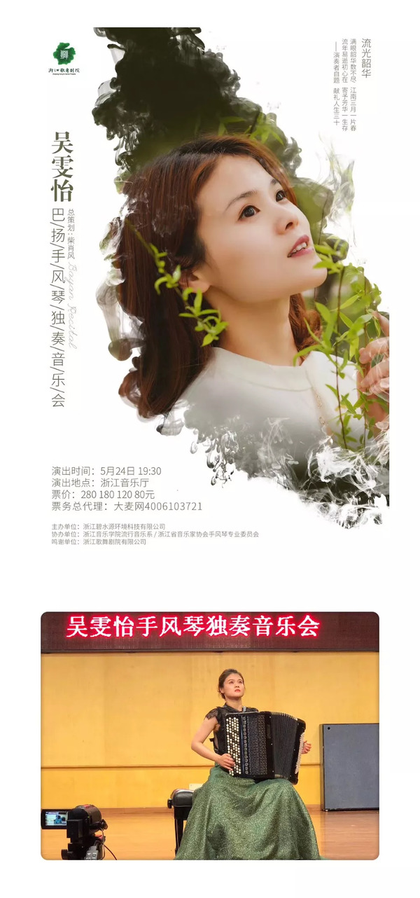 「浙音作为一所新生的音乐院校,需要去社会上展示学院教师的实力与风采。」纵观国内手风琴领域,像吴雯怡这样大量举办音乐会并不断更新曲目的青年教师是不多的,她坚持在独奏的舞台上绽放,是青年教师中的优秀代表。同时,吴雯怡拥有一种作为教师的强烈责任感与使命感:她将教学揉合于表演中,大到整场演出的稳定发挥,小到舞台上的动作、姿势、神态,耳濡目染之中为学子树立典范,在他们心中埋下向阳的种子;用舞台的磨砺为他们修剪枝叶,把每个学子当做一件艺术品,用心塑造。