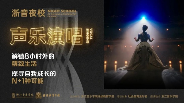 当城市的灯火渐渐温柔,当白日的喧嚣悄然退场,正是心灵与才华绽放的最佳时刻。浙音夜校,让你的艺术灵魂得以自由飞翔,探索自我成长无限可能。 在这里,8小时不再是界限,而是新旅程的起点。无论你是久违琴键,还是渴望精进技艺,“浙”里有N+1种方式,助你解锁音乐的无限魅力,让生活充满灵感与激情。