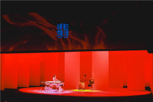 《翡翠》作为一部舞台剧,包括“翡、翠、相濡、琢器、塑魂、华光、千秋”七个篇章,以古筝表达为主,配以民族乐队的协奏,展示出古筝以及民族乐器与现代科技的融合与碰撞,用音乐手法讲述了华夏古今之文明。
