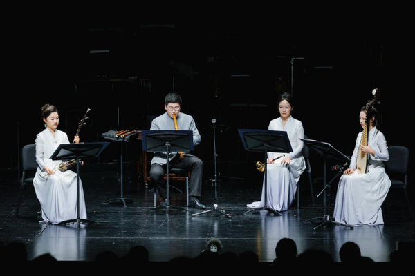 音乐会以琵琶与四重奏《春雨·心雨》拉开帷幕,青年琵琶演奏家黄琳以精湛的技艺,将春雨的细腻和心雨的缠绵演绎得淋漓尽致,仿佛将观众带入烟雨朦胧的江南水乡。随后,青年笙演奏家张馨艺带来《行香子》,悠扬婉转的笙音,仿佛诉说着古老的故事,令人沉醉其中。