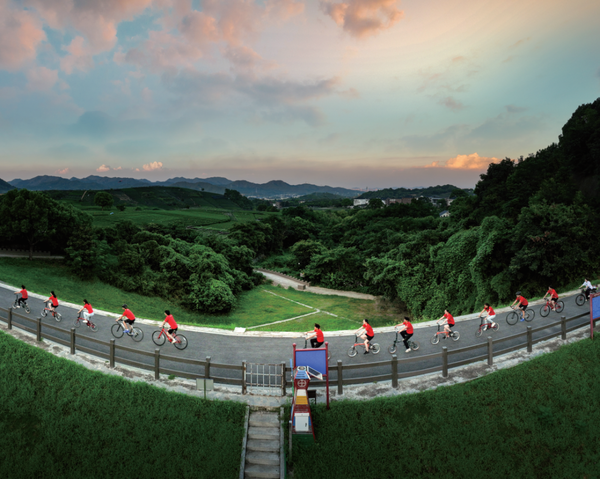 绵延的茶山往外延伸开去,就到了西山森林公园的山脚。而往西南走,就能看到光明寺水库,水库的水清澈见底,仿佛蓝绿的宝石嵌入这茶山中。贯穿茶园的,还有2015年建成的杭州主城区首条国际标准骑行赛道,因为沿途能看到山林茶园、水库溪流等别致景致,被骑友们称为“杭州最美赛道”。