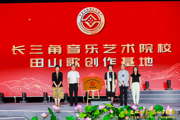 田山歌作为长三角区域孕育的独具特色的民歌品种,清亮优美,是江南文化中极具代表性的艺术瑰宝。在此次活动上,作曲与指挥系党总支副书记陈萍与上海戏剧学院戏曲学院院长李佩红、苏州大学音乐学院院长吴磊、嘉善县政协主席顾新宇等共同为“长三角音乐艺术院校田山歌创作基地”揭牌。3所长三角音乐艺术院校将以基地为依托,致力于田山歌的创作研究,积极挖掘、传承和运用好历史文化资源,推动“和而不同、美美与共”的长三角文化传承创新,谱写融合发展的文化同心圆,让这些带有乡土味、稻花香的江南文化符号融入时代、融入需求,重新焕发迷人风采。