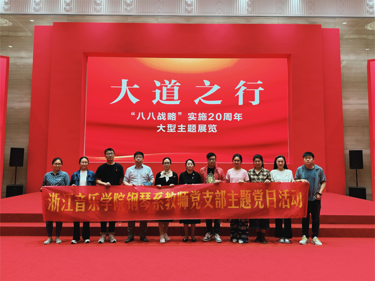 为进一步巩固主题教育成果,深入学习贯彻习近平总书记考察浙江重要讲话精神,深刻领悟“八八战略”丰富内涵和时代价值,11月1日下午,钢琴系党总支书记崔洁、教师党支部书记徐洁、学生党支部书记杨凯翔带领师生党员、学生干部等走进浙江展览馆,参观了“大道之行——‘八八战略’实施20周年大型主题展览”,切身感悟“八八战略”指引下的浙江发展之变。