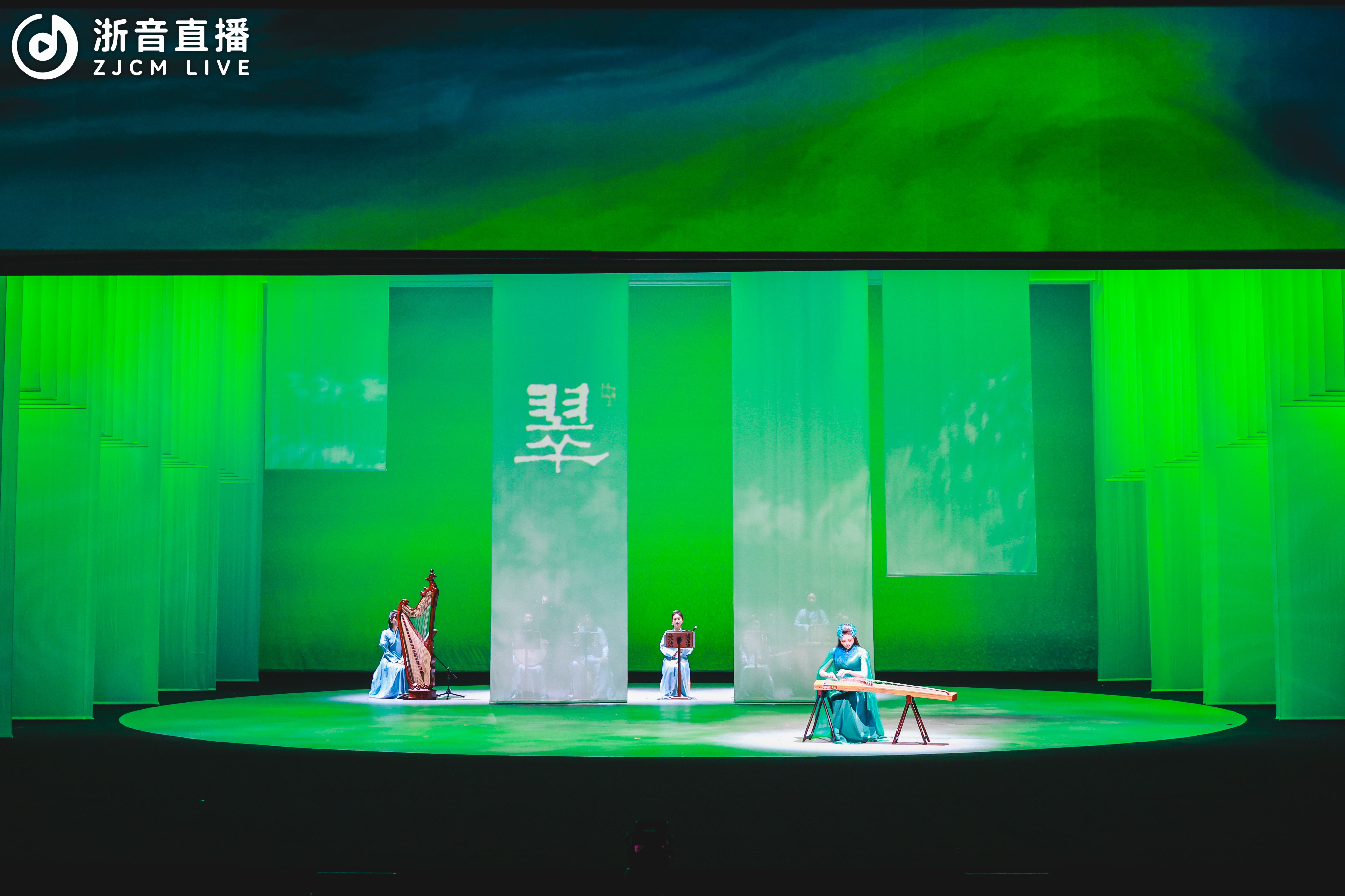 中华之魂绵延,先贤之智存续,社稷更迭,星移斗转,华夏儿女敢为天下先、善为天下先。 《翡翠》是一部舞台剧,同时也是一部古今对话的载体,更是一部民族器乐作品在现当代的思考和创新。作品以民族乐器古筝作为主要的表现载体,并通过舞蹈、灯光、舞美设计等技术手段,以一位老者和两位孩童问答式的叙述,将整场音乐会幻化成一段穿越古今的表演空间,带领观众从先秦《山海经》中的记载开始,一起感悟传统文化的博大精深以及翡翠“匠人”们的民族精神。