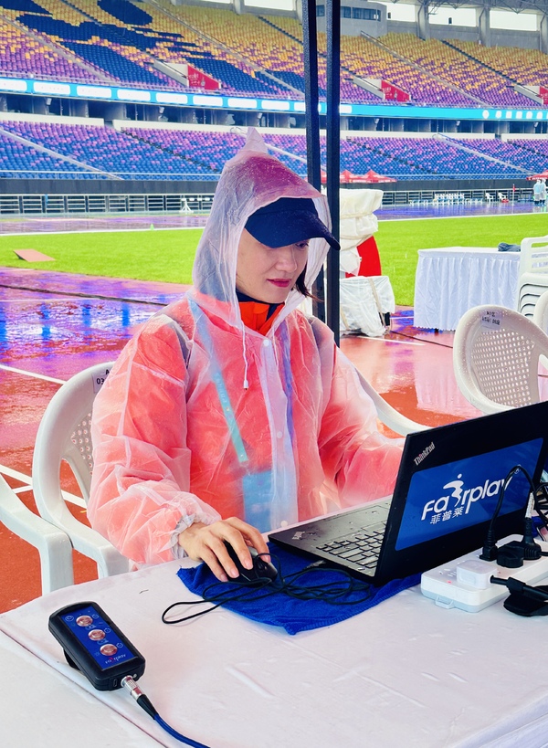 据悉,本次全国田径大奖赛吸引了来自全国33个代表队的1063名运动员参赛,赛事规模宏大,项目繁多,比赛时间长,转场紧凑,对裁判员的专业素质和体力耐力都是极大的考验。肖丽琴主要承担田赛项目的裁判任务,负责铅球和标枪项目的成绩终端记录、大屏显示、时限等重要工作。在本次赛事服务过程中,肖丽琴展现了浙音体育教师的良好精神面貌,发扬了学校事必尽善的校训精神,贡献了一份浙音的体育力量。她表示,参与各大赛事的执裁工作,不仅仅是一份荣誉,更是一份责任,同时也为后续学校体育工作积累了大型田径赛事的执裁经验,提升自身体育赛事的组织能力。