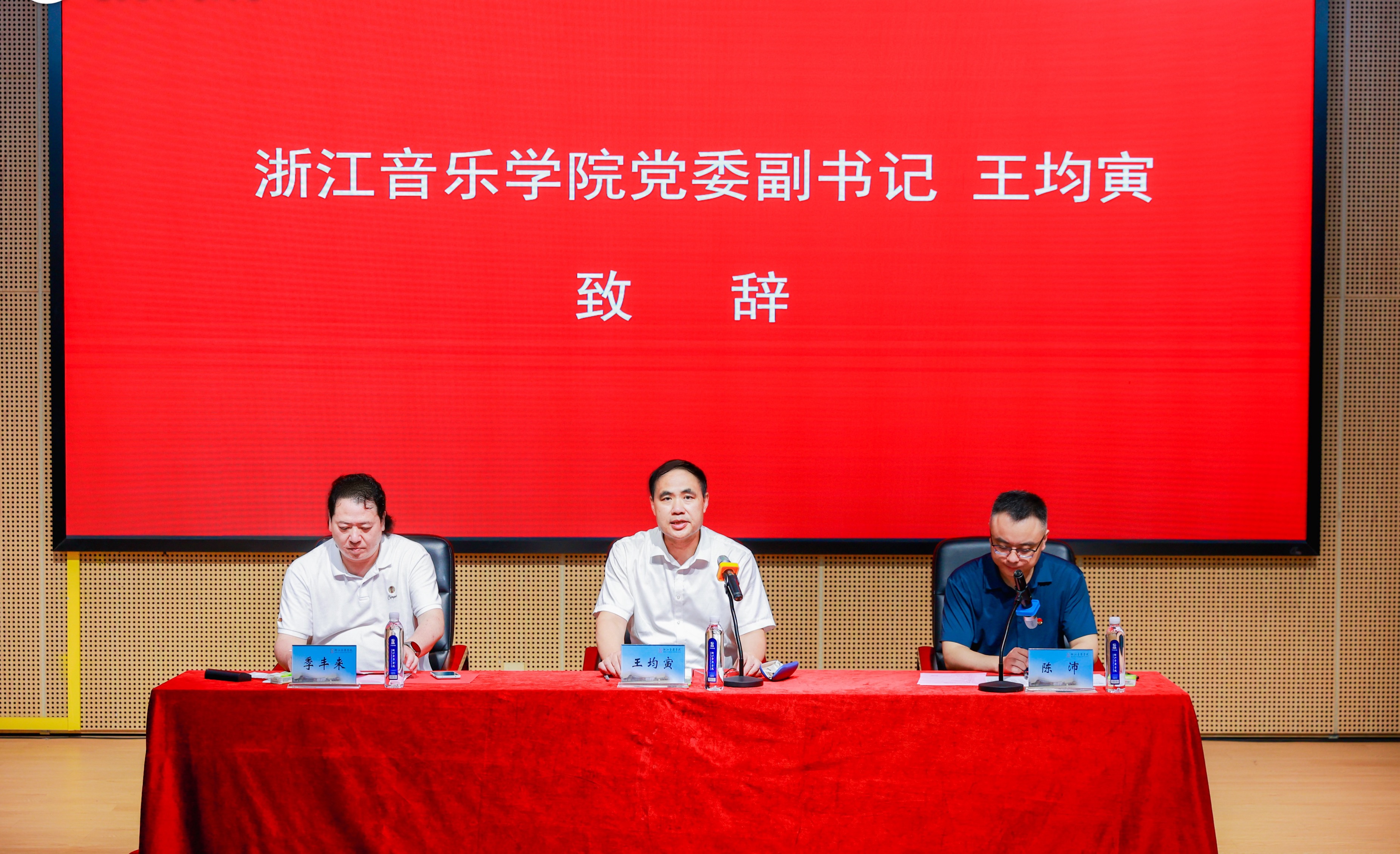 王均寅首先对毕业的57位同学表示热烈祝贺,他表示,毕业生直面生活和工作等各种压力,仍怀揣音乐梦,攻坚克难完成学业各项任务,用自己的努力和辛勤的汗水,浸润了人生旅途,用智慧讲好了浙音故事,用自信展现了自我担当。他寄语全体毕业生:一是要做一个乐观积极、心态向阳的时代新人。希望他们今后无论身处顺境还是逆境,都要以积极的心态去面对,从而成就更优秀的自己。二是要做一个孜孜不倦、终身学习的时代新人。希望他们始终培养对学习的热情和执着,努力把学习当成一种习惯。三是要做一个心存感恩、无愧当下的时代新人。希望他们感恩这个伟大的时代、感恩党、感恩老师、感恩父母,并将这份感恩化作动力成就更优秀的自己。