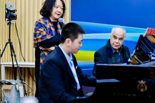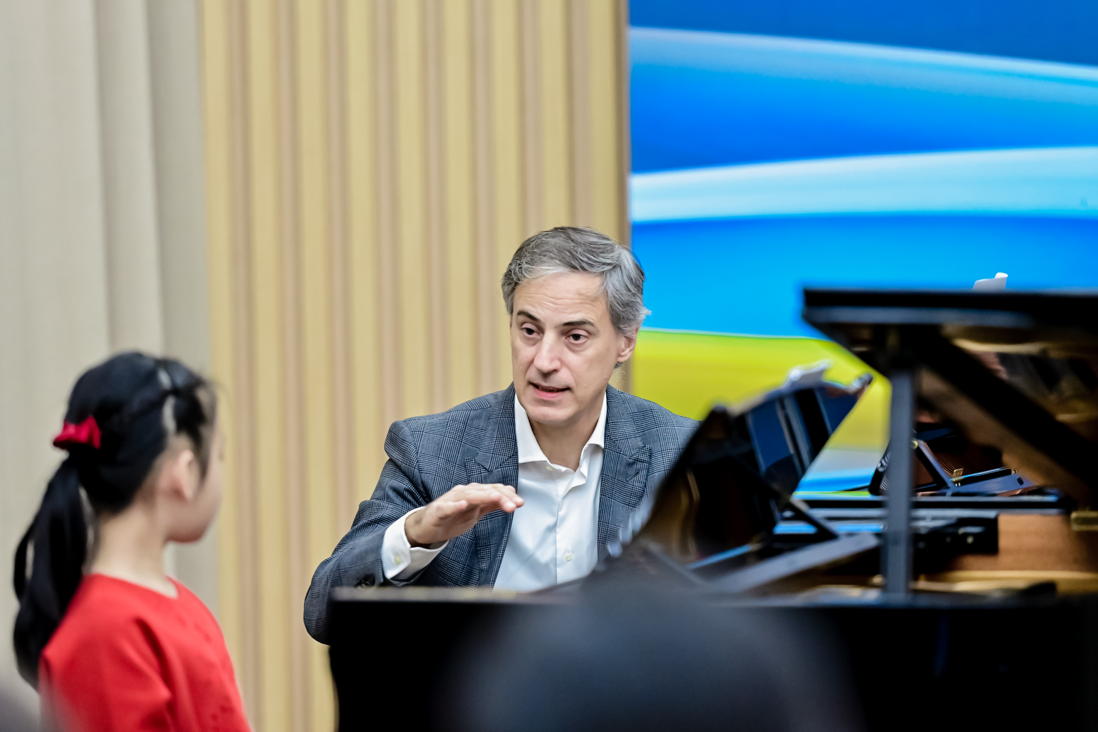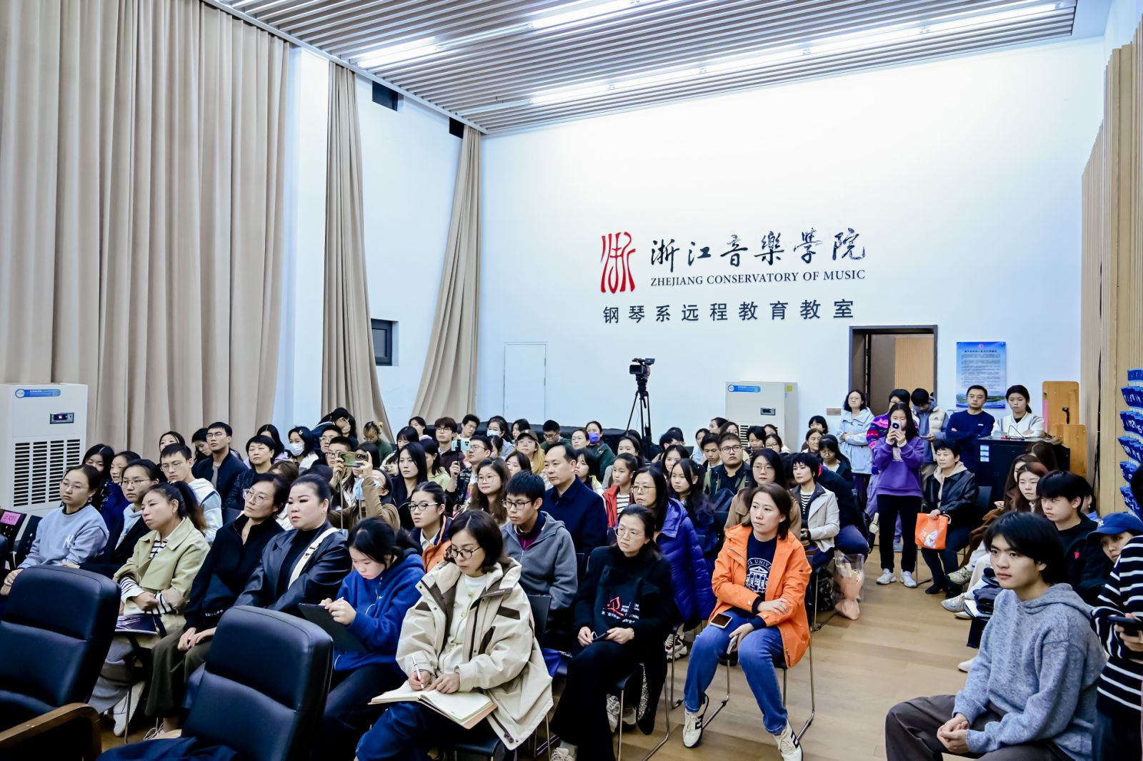 公开课现场,法国钢琴家皮埃尔·瑞雅克和意大利钢琴家、浙音特聘外籍专家教授乔万尼·维塔莱蒂分别与学员们展开面对面的深度交流。大师们不仅分享自己宝贵的教育理念与演奏实践,还通过亲自示范演奏,将每一个音符背后的深意展现得淋漓尽致。学员们积极提问,与大师们共同探讨钢琴教学的新思路、新方法,现场充满了浓厚的学术氛围和艺术气息。