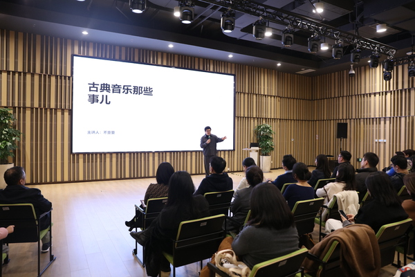 仪式结束后,艺术指导教学部青年教师金麦克副教授以《古典音乐那些事儿》为题,开启了品牌系列的首场讲座活动。讲座吸引了浙江图书馆众多古典音乐爱好者。金麦克以其幽默的风格、趣味的表达以及丰富的内容深深吸引了在场的听众。讲座结束后,很多听众继续与金老师深入交流探讨。