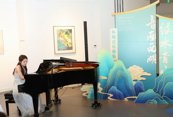 活动共分“月”“声”“情”三个篇章。首篇章聚焦“音乐疗愈”,以原创电子音乐《湖·月》揭开序幕。来自音乐工程系、创业学院的音乐疗愈师生创新团队与旅美青年作曲家合作,用电子音乐音效还原西湖的水波光影和灵动声景。随后,钢琴系2024届研究生校友明亮及美国北德克萨斯大学音乐学院在读博士、2023届本科生校友王语晨,分别以德彪西《月光》的细腻旋律与任光《彩云追月》的东方意境,展现东西方文化对月色的不同想象和艺术表达。篇章尾声,明亮演奏了肖邦的《降E大调夜曲Op.9 No.2》,深邃的琴声与西湖的月影相映成辉,琴键流淌的音符仿佛将观众带入苏轼笔下“水光潋滟晴方好”的意境佳景。