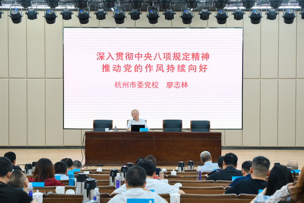开班仪式后,杭州市委党校资深教授廖志林围绕“贯彻中央八项规定精神,推动党的作风持续向好”进行了深入透彻的专题辅导。