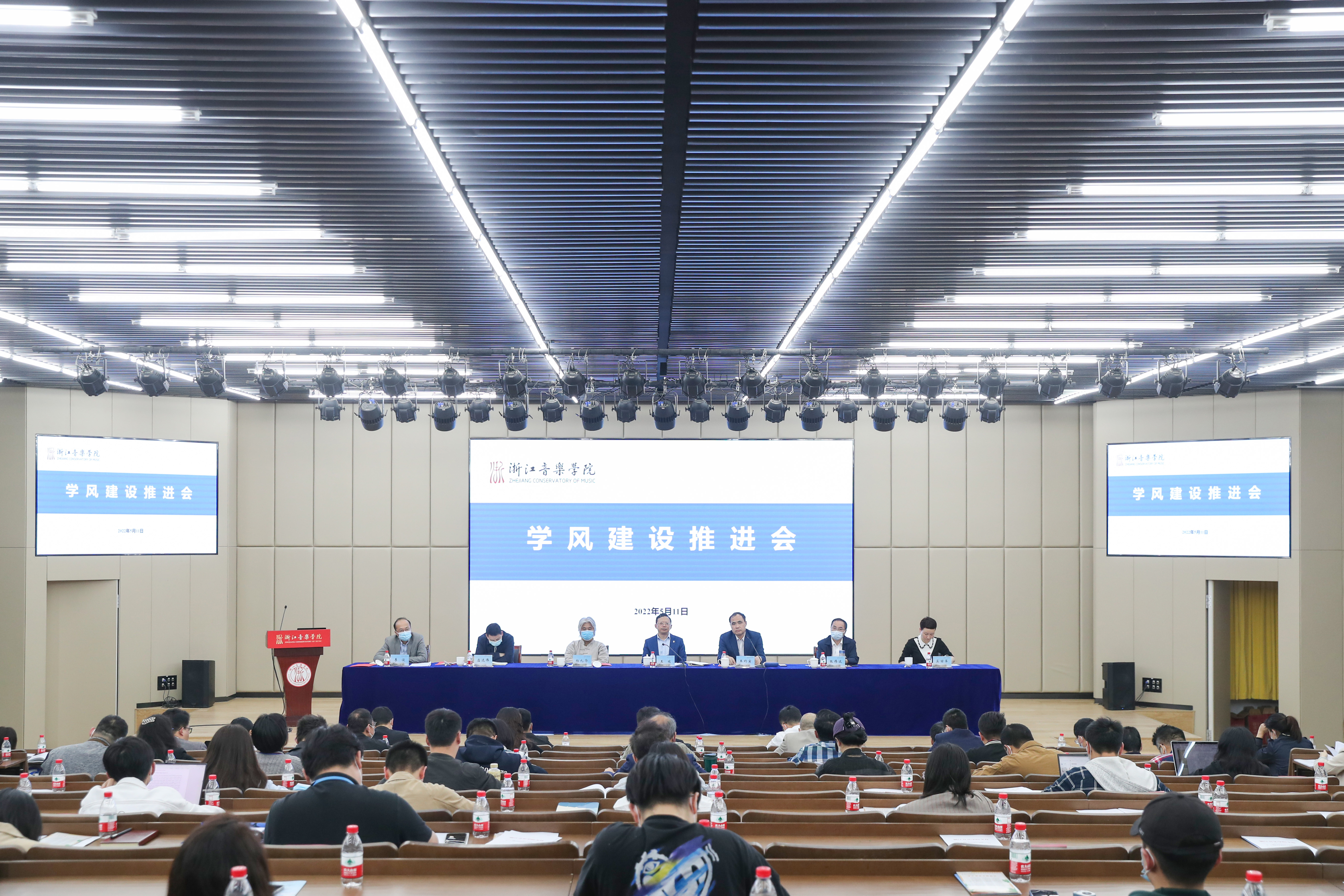 院长王瑞在大会上作了题为“激发内在动力、建立长效机制,努力建设浙音特色的优良学风新面貌”的讲话。他充分肯定了建校以来各单位在推进学风建设的制度保障、教育教学的系列改革、艺术实践的品牌培育等方面取得的成绩。他指出,学风是校风、教风、师德师风的本质反映,是办学理念和办学水平的充分彰显,良好学风是高水平大学的共有品质与特征。推进学风建设是“十四五”内涵发展的重要内容,也是推进高水平一流音乐学院建设的必然要求,召开学风建设大会是对学院建校以来学风建设工作的一次及时总结和系统梳理,更是对下一阶段良好学风建设的全面部署与动员。王瑞强调,全校上下要在思想上高度重视、认识上高度统一,深入贯彻落实习近平总书记关于教育的重要论述,全面落实上级部门关于教育教学改革的决策部署,客观分析当前学风现状和存在问题,探索激发学风建设内在动力的有效方式,将学风建设作为增强核心竞争力,实现后发先至、后来居上的重要路径选择。要敢于抓学风、善于抓学风,以学风建设推动教育教学、管理服务的系列变革,将学风建设的成效体现在学院发展的方方面面。要强化落实、形成合力,提升学风建设的系统性、有效性,将学风建设作为单位考核和教师考核的重要内容,以定量为主、定性为辅,不断完善学风建设的长效机制。最后,他指出,学风建设是一项持久性的系统工程,需要我们始终坚持以学生为中心、以教师为主体的理念,充分吸收高水平一流高校的先进经验,葆有信心、耐心、恒心和包容心,久久为功、常抓不懈,全面助推高水平一流音乐学院建设,以优异成绩迎接党的二十大胜利召开。