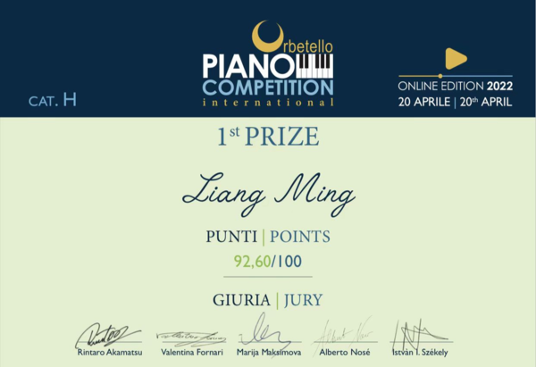 近日,意大利奥贝雷洛国际钢琴比赛公布结果,学院钢琴系研究生明亮(指导教师金瀚文、朱昊)荣获比赛第一名。明亮2015年起师从第七届金钟奖金奖、第五届安东·鲁宾斯坦金奖得主、钢琴系青年教师朱昊,学习期间专业成绩优秀,获得匈牙利李斯特音乐学院公费留学资格,并于2022年入选李叔同学院“拔尖人才培养计划”。