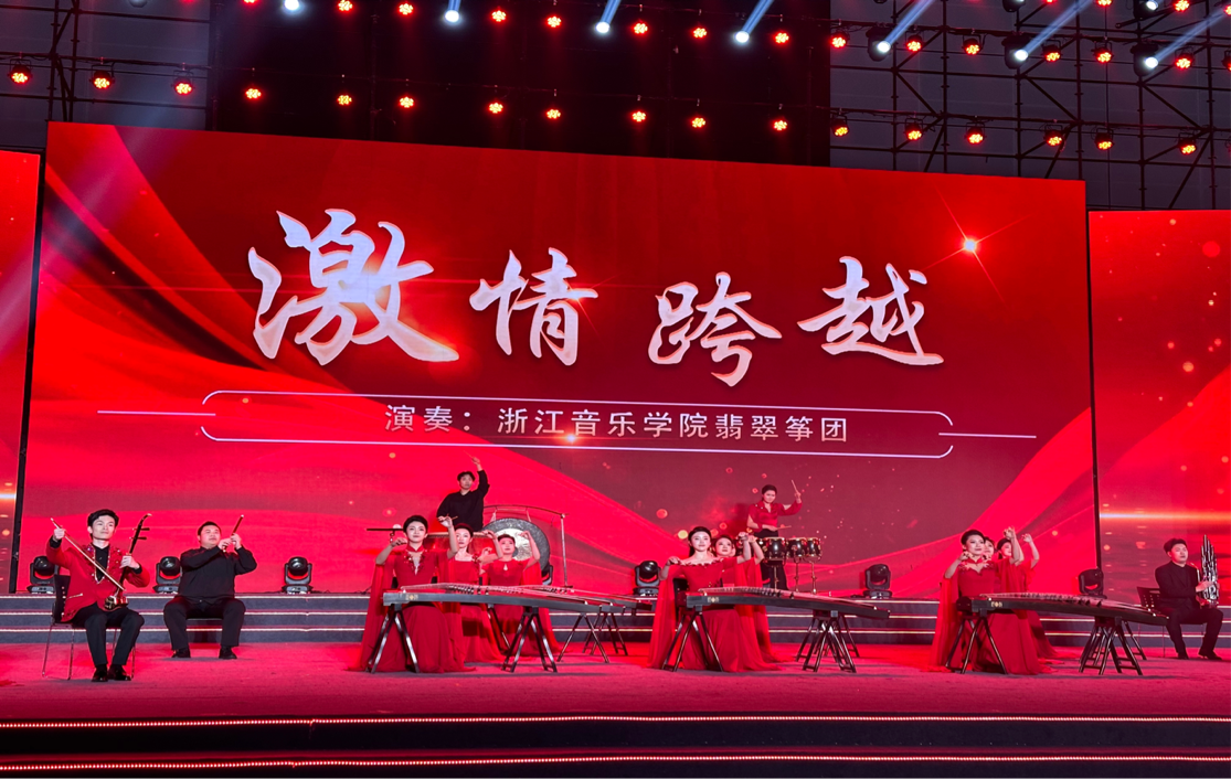 2月19日,杭州亚运会、亚残运会开闭幕式暖场节目征集分片遴选暨杭州亚运会倒计时200天系列活动(杭州、宁波、舟山专场)在临平体育馆举行,由国乐系周展、盛秧老师带队,学院翡翠筝团演奏的《激情跨越》在众多节目中脱颖而出,以评委全票通过的优异成绩入选杭州亚运会、亚残运会开闭幕式暖场节目资源库。
