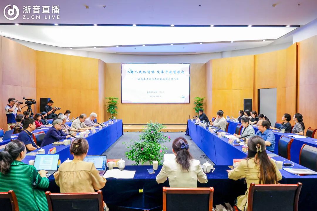6月26日,施光南追思缅怀座谈会暨专题学术研讨会在学院召开。文化和旅游部艺术司副司长黄小驹、中国交响乐团党委书记周宇、文化艺术出版社总编辑王红和金华市金东区宣传部等有关部门、单位领导,学院院长王瑞、副院长汪洋,洪如丁女士和家人代表,以及郑小瑛、田青、乔建中、关牧村、佟铁鑫、钱国桢、居其宏、梁茂春、张振涛、李诗源等众多施光南生前好友、艺术名家大师等出席座谈会。