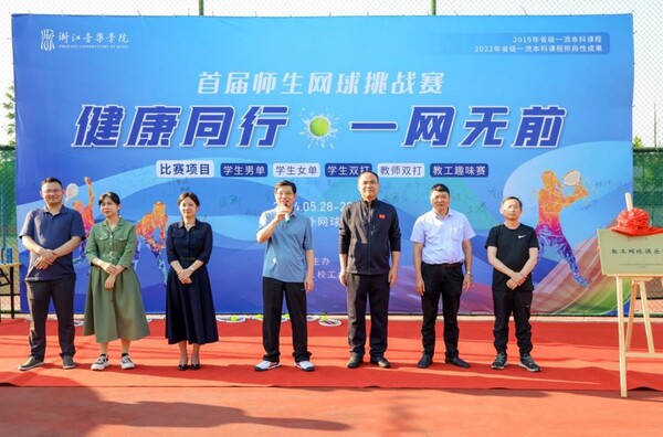 初夏五月,青山环翠、万木芳华。近日,学校举办首届师生网球挑战赛,学校党委书记干武东,党委副书记王均寅、蔡亦军出席开幕式。本次比赛历时2天,设置有学生男子单打、学生女子单打、学生双打、教工双打和教工趣味等项目,得到了全校师生的热烈响应,共有126人次报名参赛。