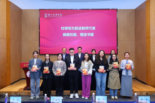 仪式上,干武东代表学院对新入职教职工表示欢迎。他总结回顾了近年学院发展取得的工作成绩,与全体新进教职工重温了习近平总书记在全国教育大会上的殷切嘱托,并对他们提出三点要求:一要坚定理想信念,始终牢记“为党育人、为国育才”的初心使命。教师承担着传播知识、传播思想、传播真理的历史使命,肩负着塑造灵魂、塑造生命、塑造新人的时代重任。要始终坚持立德树人根本任务,坚持弘扬正道,不断提高道德修养,提升人格品质,追求德艺双馨,把正确的道德观传授给学生,为学生系好“人生第一粒扣子”。二要提升能力素质,始终保持“事必尽善、精雕细琢”的进取精神。教育是一项精细的工作,艺术教育尤其需要教师的悉心引导和精心栽培。要以高度的敬业精神塑造学生品格,以精湛的学术造诣启迪学生智慧,以专业的教学技能引领学生发展,让每一位学生都有机会站上梦想的舞台,成就出彩的人生。三要勇担时代使命,始终践行“服务学校、服务发展”的责任担当。浙音既是一所高校,也是一家文化单位,除了培养艺术人才,还承担着服务国家文艺事业的使命和任务。要围绕党中央、省委省政府重要决策部署,充分发挥自身的专业优势,打造音乐艺术人才培养的摇篮,在文化强省建设的大场景中建功立业。希望全体教师主动将自己的人生规划、职业发展与学院的发展全局、改革大局紧密结合起来,全力提升人才培养能力、科学研究能力、艺术创表实力和服务社会水平,为学院高质量发展贡献力量。