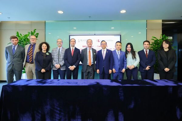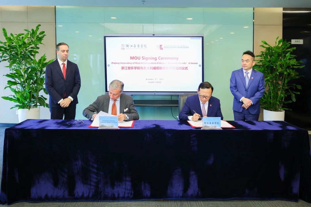 王瑞、法比奥·莫雷蒂共同签署合作备忘录,董德君、程若轲见证签约。
