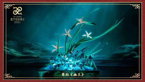 《幽兰》从中国古典舞的核心元素“兰花指”出发,由指尖的点点涟漪,延伸至身体的动势美学,再至舞台空间的完整叙事,一气呵成地绘制出一幅空谷幽兰的简素画卷。柔美灵动的舞姿、清新雅致的色彩,兰花的姿态之“形”与品格之“神”的交相呼应,既是对中华品格的真情赞颂、对中华文脉的赓续传承,也是对祖国昌盛、人民幸福安康的深切祝福。