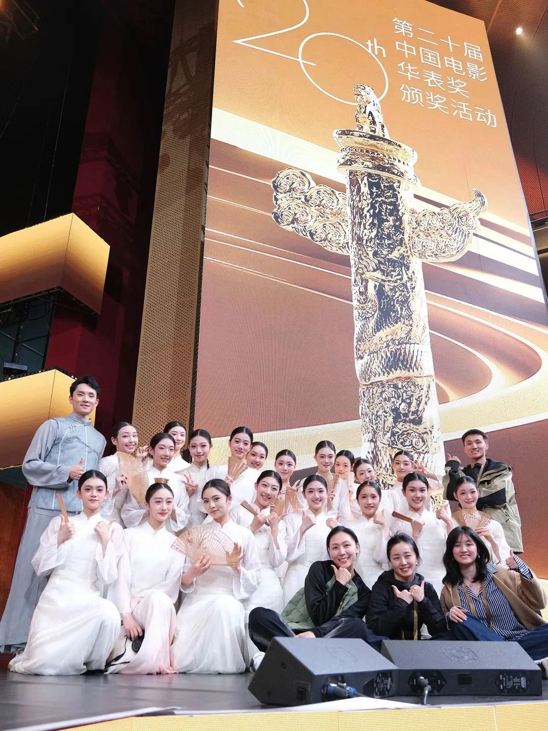 以扇舞绘江南雅韵,以光影叙百年匠心。4月27日晚,第二十届中国电影华表奖颁奖典礼在山东省青岛市举行,舞蹈学院原创舞剧《一扇百年》选段《光影匠心》受邀作为现场表演节目登上华表奖颁奖舞台。