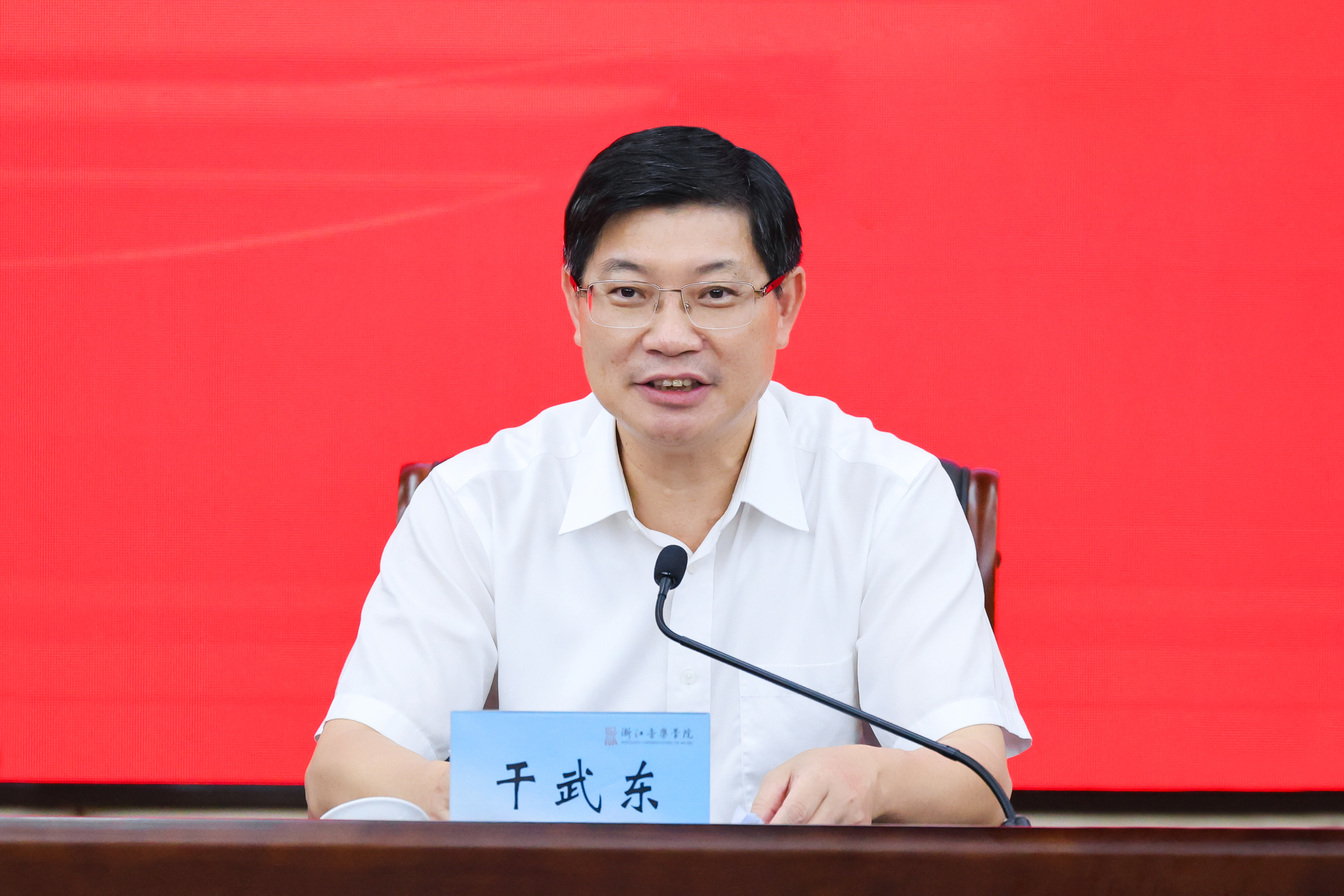 党委书记干武东在讲话中指出,上半年,在上级有关部门的指导下,经过全院上下的共同努力,学院全面从严治党工作成效明显,干事创业正能量进一步激发,风清气正校园生态进一步巩固。与此同时,也要清醒认识当前学院全面从严治党面临的形势与问题,深刻理解和把握新任务新要求,持续加以整改落实。他强调,高等教育肩负着为党育人、为国育才的重大使命,浙音作为一所艺术院校,要通过进一步加强全面从严治党,不断引导师生树立正确的艺术观和价值观,创作更多更好具有正能量的优秀作品,培养更多更好的社会主义接班人,为繁荣社会主义文化事业做出积极贡献。针对下一阶段全面从严治党工作,干武东指出,一是要扎实推进学习教育,筑牢党性党风党纪根基。各二级党组织要进一步提高政治站位,将学习教育作为一项严肃政治任务来抓,把整治工作贯穿学习教育始终,以实实在在的整治成效回应师生关切、落实上级要求。二是要强化责任担当,拧紧扣牢工作责任链条。进一步树立“抓好党建是本职、不抓党建是失职、抓不好党建是渎职”的理念,切实扛起主体责任,将全面从严治党责任层层传导、压紧压实。三是要对标全年工作,高质量完成下半年任务。把学习教育和中央、省委决策部署及学院中心工作结合起来、重点工作结合起来,以高质量党建引领高水平发展。
