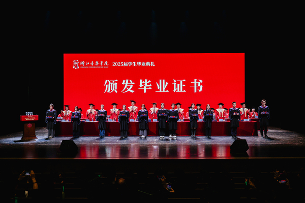 党委副书记王均寅主持毕业典礼,副院长汪洋宣读准予2025届毕业生毕业的决定。学院领导为毕业生代表颁发毕业证书,并为40名“浙江省普通高等学校优秀毕业生”颁发证书。