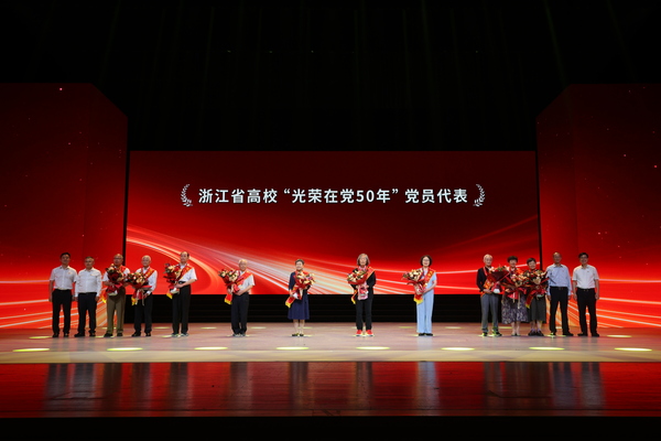 活动现场,全省高校优秀共产党员代表、优秀党务工作者代表、先进基层党组织代表和50年党龄老党员代表依次登台接受表彰。