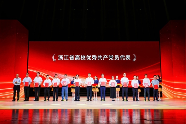 许翰信为浙江省高校优秀共产党员代表颁发证书。