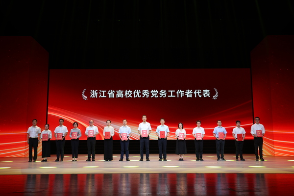 魏祖民为浙江省高校优秀党务工作者代表颁发证书。