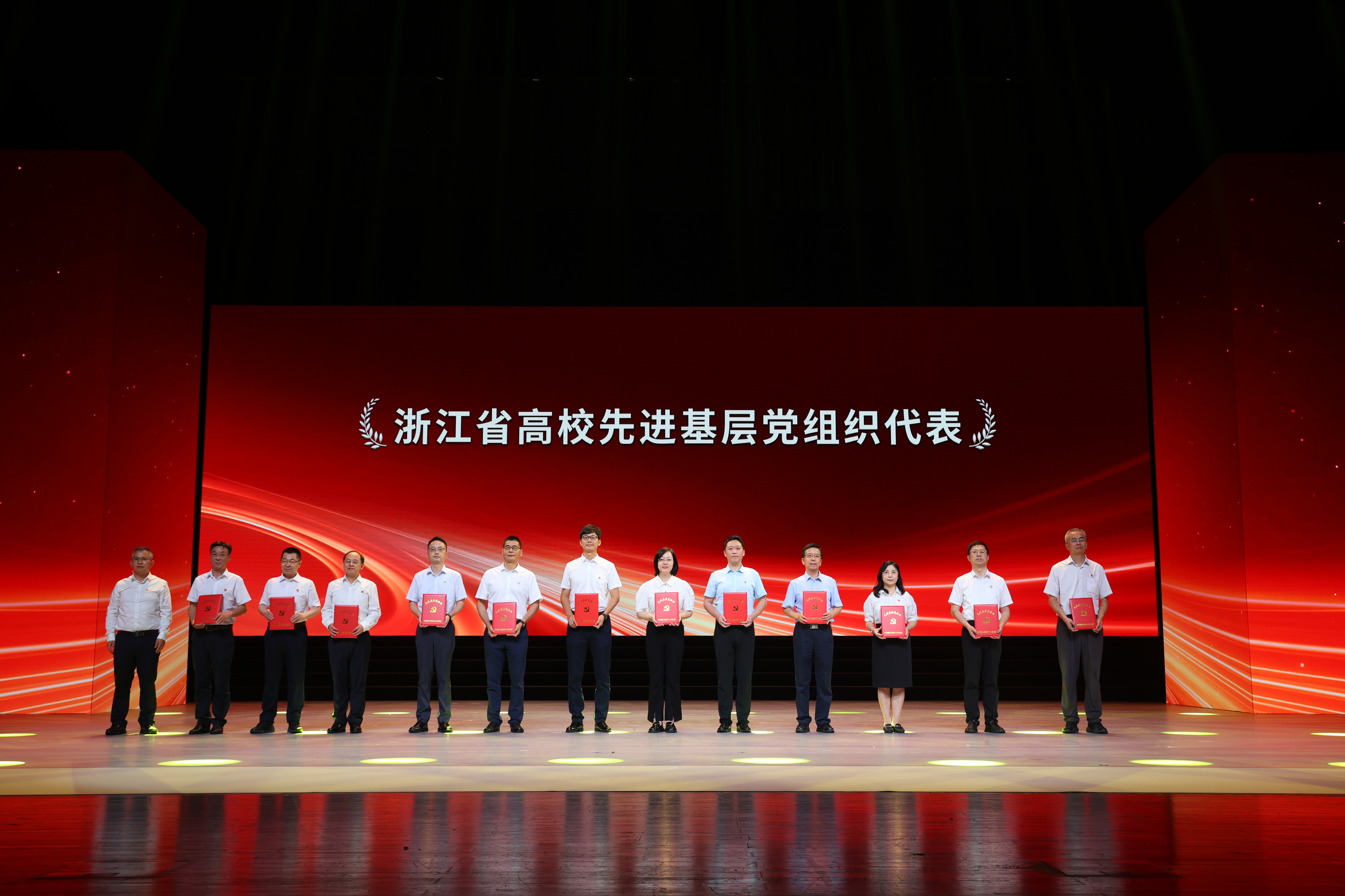 王钢为浙江省高校先进基层党组织代表颁发证书。